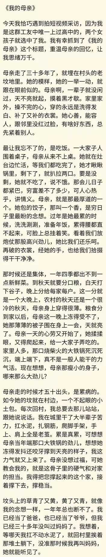 史莱姆以前看优秀作文的时候总觉得为赋新词强说愁,一种空洞的感觉。像是伪人尽力假装亲身经历过一样。 这个大爷的文章,却很真挚,像是憋了好多年的话,终于能说出来了。